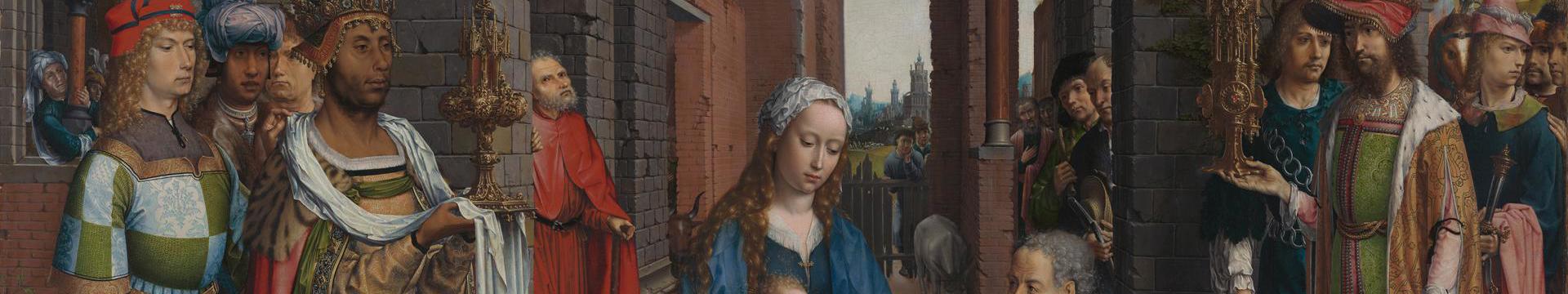 At the turn of the 16th century, the primary purpose of painting in Europe remained to produce Christian art. Altarpieces like Jan Gossaert’s Adoration of the Kings provided a splendid backdrop to the celebration of Mass. By including donor figures, altarpieces could also commemorate the people who had commissioned them. The two large panels by Gerard David, the leading painter in Bruges at the time, feature vivid portraits of their donors.